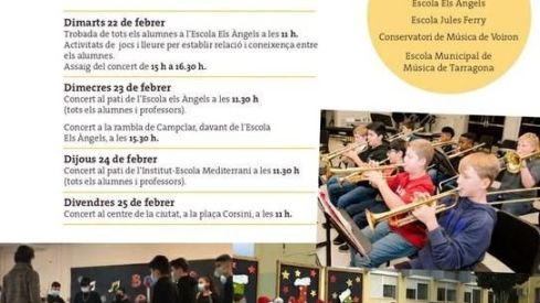 L’intercanvi comença aquest dimarts 22 de febrer, amb una trobada de tots els alumnes. Després d’una jornada d’activitats de jocs i lleure per a conèixer-se es farà un assaig del concert que debutarà al mateix centre dels Àngels dimecres al matí. A la tarda, a les 15.30 h, a la rambla de Campclar, davant l’escola, es repetirà el concert, aquesta vegada, però, obert al públic. Dijous, l’escenari es traslladarà a l’institut escola Mediterrani, i divendres, a les 11 h, a la plaça Corsini, on es clourà l’intercanvi musical amb un últim concert per a tota la ciutat.