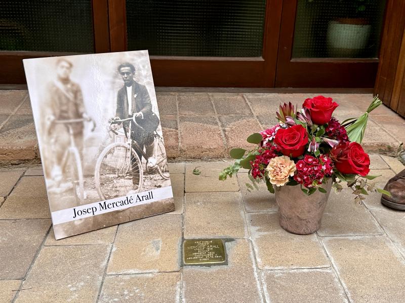 Finalment, en Lluc Mercadé, acompanyat pels seus pares, Joan i Conxita, ha destapat l’Stolpersteine dedicada a en Josep Mercadé, al carrer Sant Salvador número 19, allà on hi va viure i el van estimar abans de viure l’horror de l’exili i la deportació.