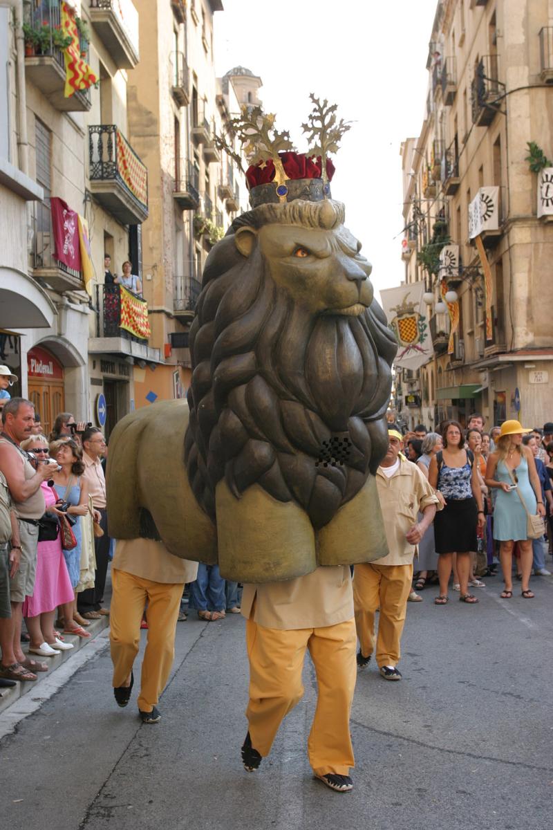 Amb la recuperació de balls i bèsties a finals del segle passat, el Lleó va ser l’últim element sense foc en aparèixer en escena. L’Associació de Veïns Verge del Carme volia formar part de les festes i la Comissió Assessora del Seguici Popular els va proposar recuperar aquesta figura el 1993. L’encàrrec el va agafar l’escultora Dolors Baena, però va tenir algunes complicacions en el procés. “Vam presentar el projecte a l’Assessora i no va agradar. El Lleó no tenia aquest posat majestuós i seriot que té actualment”, relata Francesc Martorell, actual cap de Colla de l’Associació de Portants del Lleó de Tarragona.