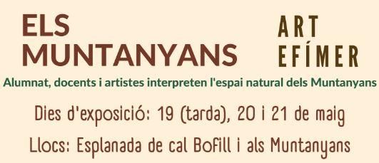 Cal Bofill i els Muntanyans acolliran demà, dissabte i diumenge l’exposició «Art Efímer: Els Muntanyans» com a cloenda del Projecte Interdisciplinari ELS MUNTANYANS que han dut a terme els alumnes de l’Escola Molí de Vent de Torredembarra al llarg d’aquest curs escolar.
