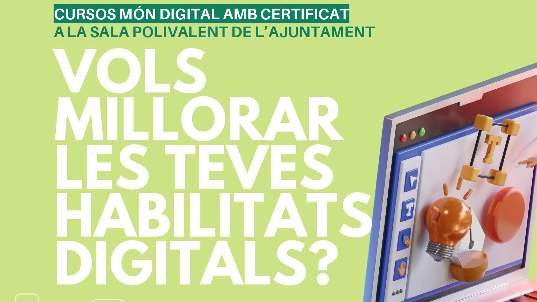 - Ens movem pel món digital: dilluns i dijous de 10 a 12 hores (del 2 al 26 de febrer, excepte el 23 de febrer). Una introducció pràctica per aprendre a utilitzar el correu electrònic, a fer i gestionar fotos amb el mòbil, a navegar per internet i a mantenir-nos segurs en línia.