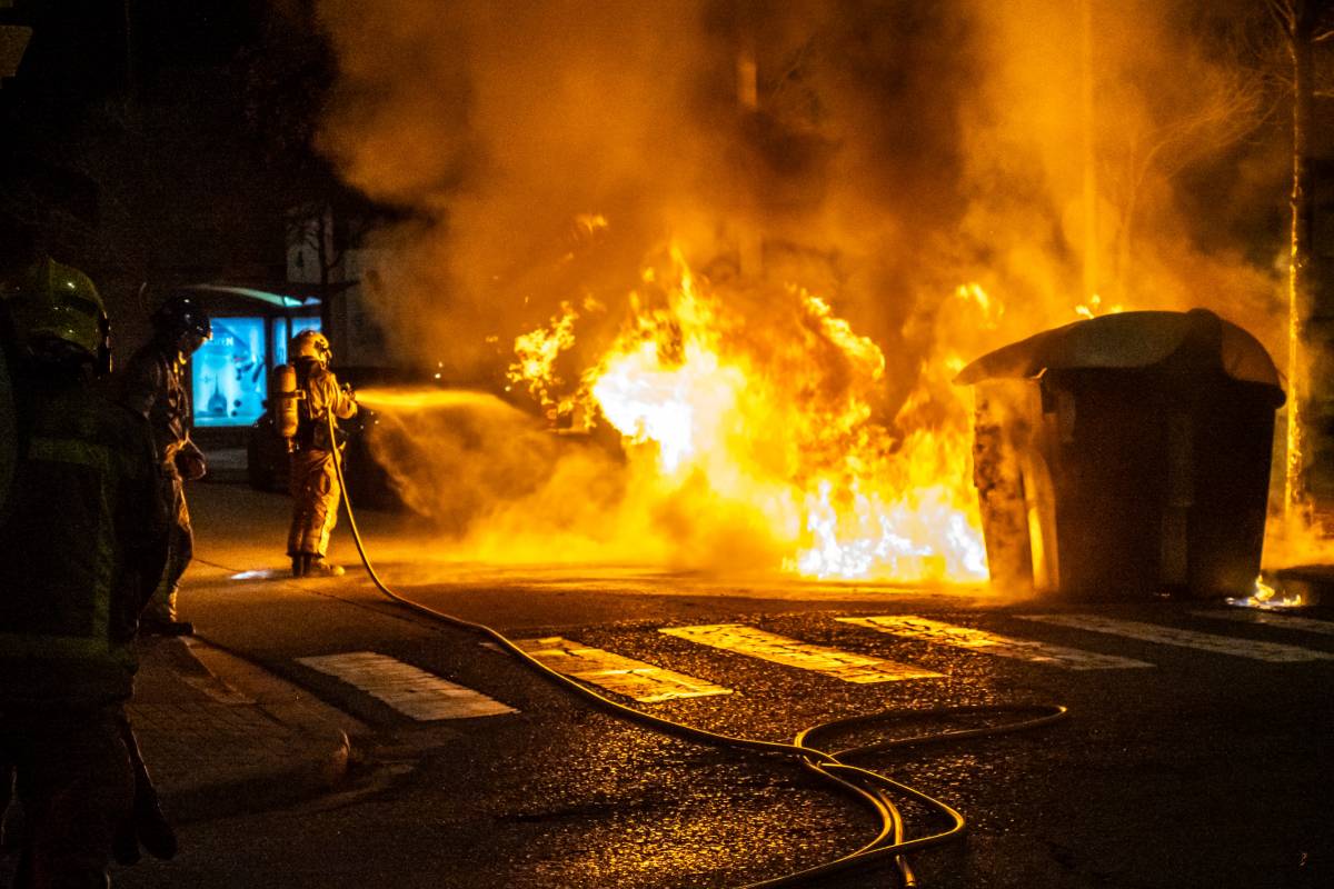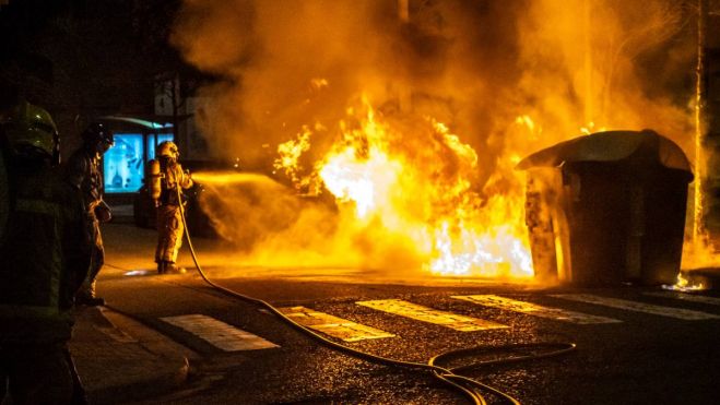 El primer avís s’ha rebut a les poc abans d'un quart de dotze per l’incendi d’una paperera al carrer Vint-i-u. Fins al lloc s’hi ha desplaçat una dotació terrestre dels Bombers per extingir les flames.
