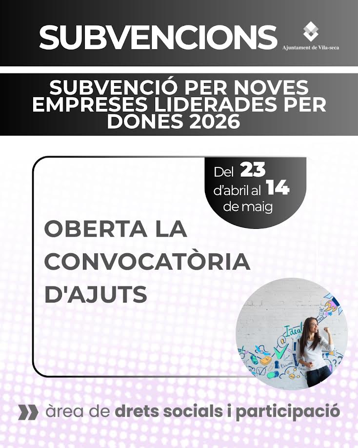 L’Ajuntament de Vila-seca ha obert una nova convocatòria de la 'Subvenció per a noves empreses liderades per dones', una línia d’ajuts destinada a impulsar l’emprenedoria femenina i a reforçar el teixit econòmic del municipi. El període de sol·licitud romandrà obert fins al 14 de maig.