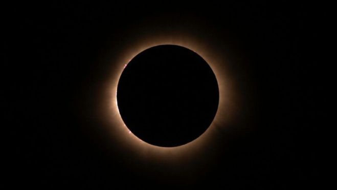 A continuació, i durant un minut i 25 segons, es farà de nit de cop. Al voltant del lloc on es troba el Sol es podrà intuir una certa resplendor: es tracta de la corona solar. La temperatura baixarà lleugerament. La fauna salvatge també percebrà l’excepcionalitat del moment i aturarà la seva activitat. El seu silenci a l’espectacle de la natura.