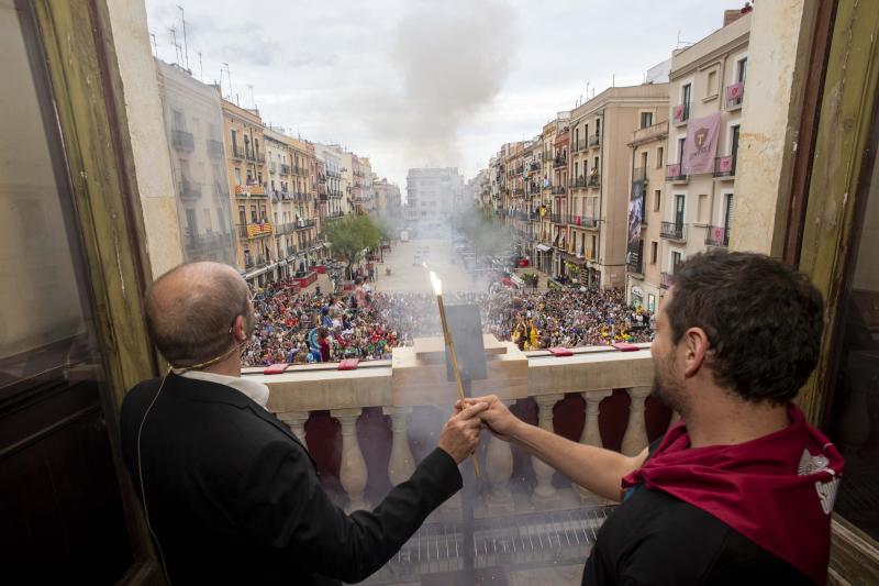 Tot seguit, alcalde i pregoner han onejat la Senyera al balcó i han encès la metxa que ha donat inici a la tradicional Tronadaa càrrec de la Pirotècnia Martí, de Borriana (Plana Baixa).