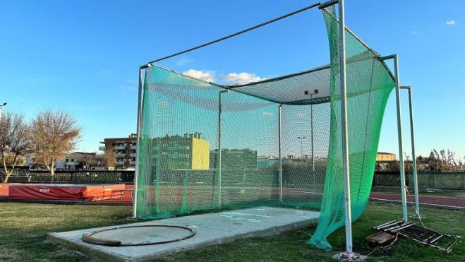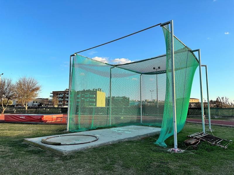 La pista d’atletisme de la Zona Esportiva Municipal de Torredembarra ha estrenat una gàbia annexa per a l’entrenament de llançament de disc, pes i martell, dissenyada perquè la xarxa que està per tot el voltant i sostre esmorteeixi l’impacte del llançament i l’artefacte no surti de dins la gàbia.