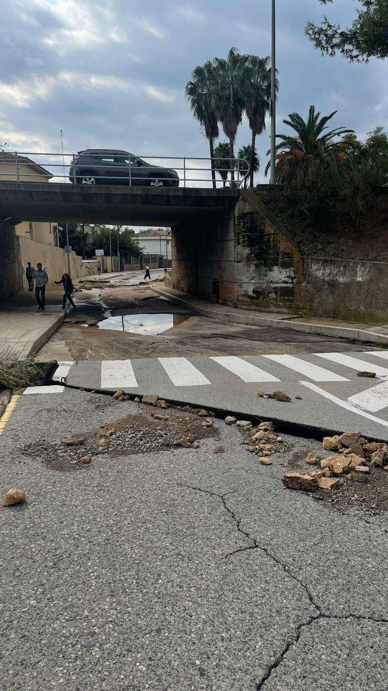 Com es pot apreciar a la imatge, l’asfalt es troba tot aixecat i trencat a causa de les inundacions que es van patir a la zona durant la jornada d’ahir. Es tracta de la mateixa zona on ahir es van poder veure imatges de com els cotxes eren arrossegats per l’aigua.