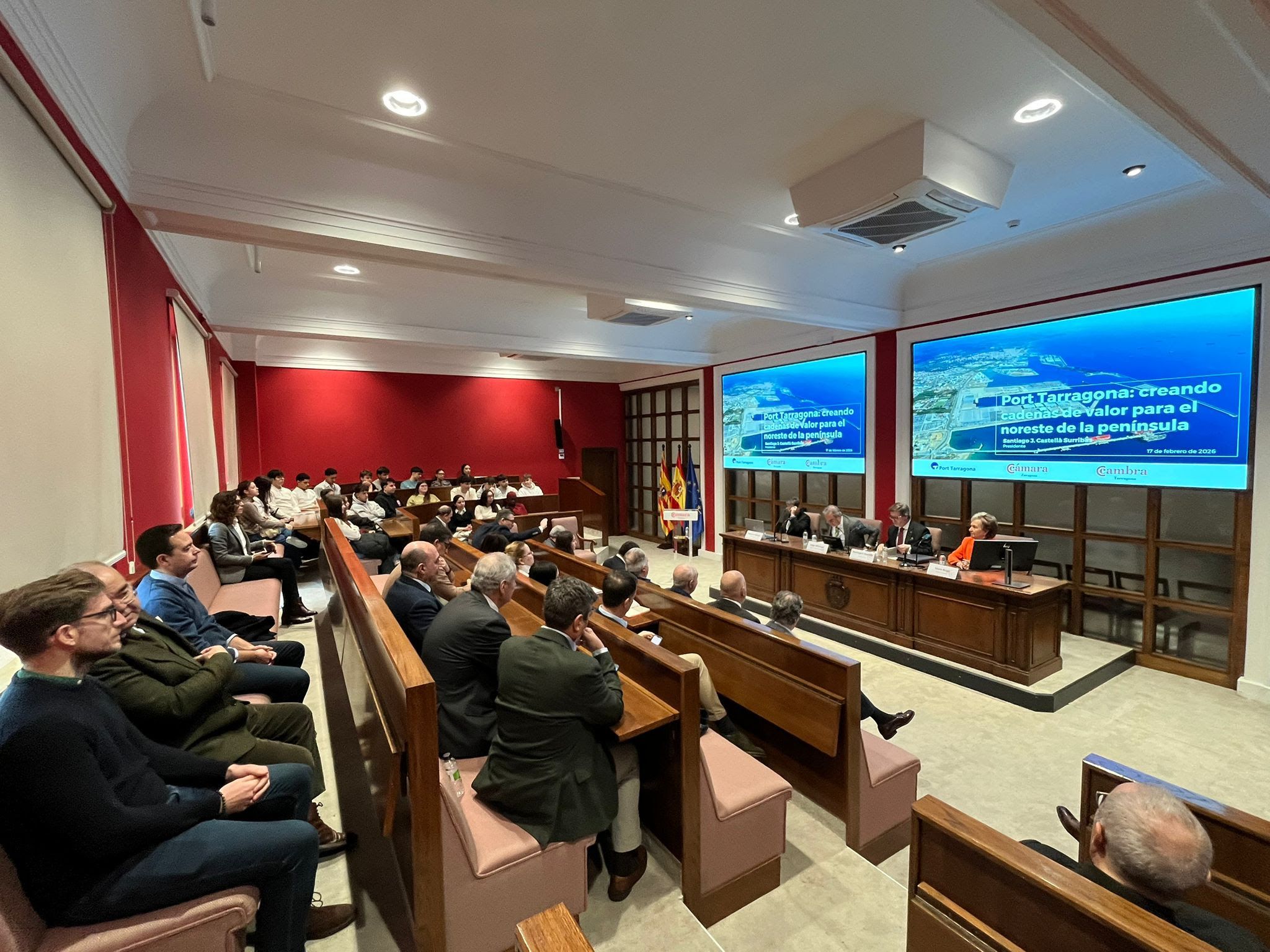 Port Tarragona reforça la seva aliança estratègica amb l’Aragó i la vall de l’Ebre per a consolidar el nord-est peninsular com a regió logística competitiva i amb capacitat de creixement. El president de Port Tarragona, Santiago J. Castellà, ha protagonitzat aquest dimarts, 17 de febrer, la jornada ‘Port Tarragona: creando cadenas de valor para el noreste de la península’ a la Cámara de Zaragoza. En l’esdeveniment, que ha reunit representants d’institucions, empreses i organismes aragonesos i catalans, Castellà ha explicat que les noves infraestructures i projectes que està liderant el Port, com la nova terminal marítima per a contenidors i càrrega general o la terminal ferroviària de Guadalajara – Marchamalo, obren noves oportunitats de negoci no només per a Port Tarragona, sinó per a tota la seva zona d’influència i, especialment, per a l’Aragó, gràcies al seu teixit industrial i logístic.