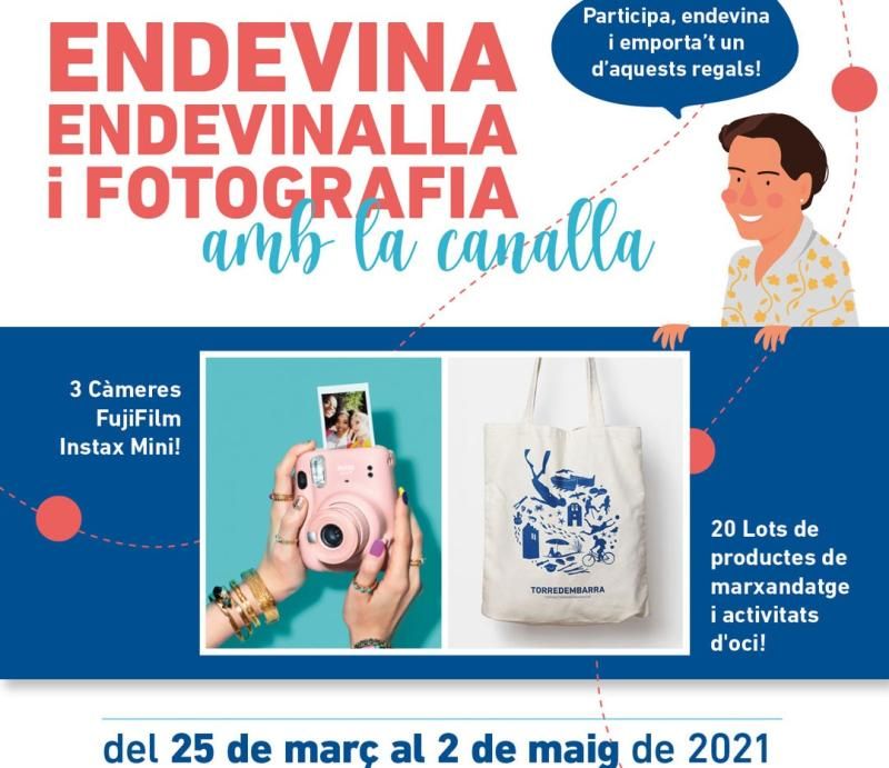 La Regidoria de Turisme de Torredembarra durà a terme del 25 de març fins al 2 de maig una activitat promocional del municipi adreçada a les famílies: "Endevina, endevinalla i fotografia amb la canalla." Aprofitant l’arribada de la primavera es motiva les famílies perquè acompanyin la canalla de ruta per la Torre resolent endevinalles que els portaran a vuit punts diferents del municipi.Es tracta d'una activitat lúdica on els infants i les famílies participen plegats en el coneixement de la cultura, geografia i història del poble. Cal anar resolent les endevinalles per saber a quin punt de Torredembarra cal adreçar-se, on s’ha de realitzar una foto ben original i creativa.Una vegada resoltes les vuit endevinalles i fetes les vuit fotografies corresponents, s’han de presentar junt amb el formulari del concurs per correu electrònic a l'adreça de turisme@torredembarra.cat i així poder entrar en el sorteig de tres càmares FujiFilm Instax Mini i vint lots de productes de marxandatge i activitats d'oci.La regidora de Turisme, Marina Riudeubas, ha explicat que aquesta activitat s’emmarca en el concepte del Redescobreix Torredembarra que es va posar en marxa l’estiu passat i és molt adequada per a realitzar en aquests moments de restriccions per la Covid-19, ja que està pensada per a realitzar amb la bombolla de convivència i a l’aire lliure.El formulari per participar en el concurs es pot trobar als comerços del municipi, a l'Ajuntament i a l'Oficina de Turisme. També es pot descarregar al web www.turismetorredembarra.cat