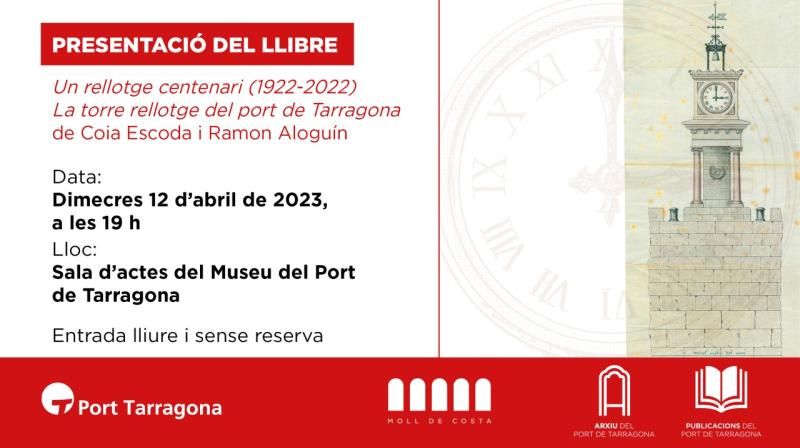 La setmana vinent, dimecres 12 d’abril, a les 19 hores, la sala d’actes del Museu del Port de Tarragona, acollirà la presentació de la darrera publicació del Port de Tarragona, 'Un rellotge centenari (1922-2022). La torre rellotge del port de Tarragona' per commemorar l’aniversari d’aquest emblemàtic monument portuari. A l’acte hi assistirà el president del Port de Tarragona, Saül Garreta, amb els autors de la publicació, Coia Escoda Múrria, responsable de l’Arxiu portuari i historiadora, i Ramon Aloguín Pallach, arquitecte i divulgador de la història tarragonina i portuària.