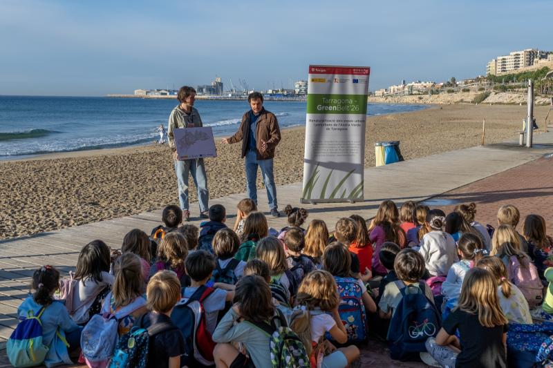 La primera sessió s’ha dut a terme amb alumnes de cicle mitjà de l’escola del Miracle. L’activitat, que s’ha realitzat a la platja del Miracle, ha comptat amb la participació del conseller de Medi Ambient de l’Ajuntament de Tarragona, Guillermo García de Castro, qui ha posat en valor el fet “d’apropar als més petits el projecte Tarragona Greenbelt’26 així com la importància del coneixement i la cura per la nostra biodiversitat i pels nostres espais naturals”.