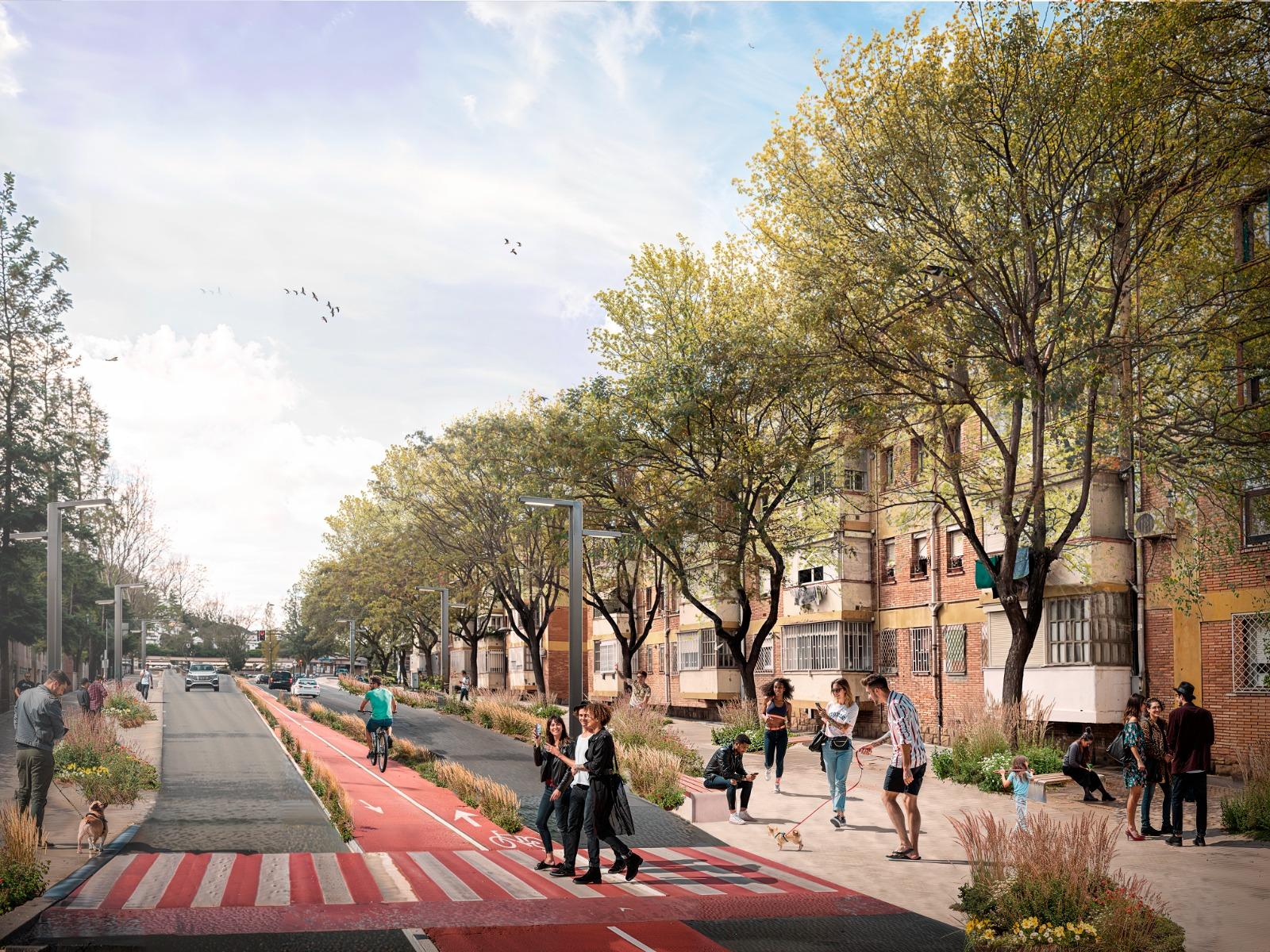 A més, la proposta aposta per una ciutat més verda, amb l’increment de la vegetació, la renaturalització i la integració amb l’arbrat existent, així com la creació de nous espais verds d’estada, de descans, de relació i de joc. També es preveu la renovació de l’enllumenat per millorar el confort de la ciutadania.