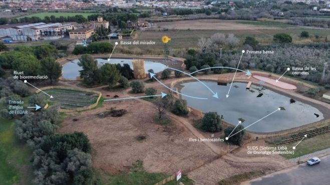 L’espai combina un curs d’aigua lent amb tres basses dissenyades amb perímetres irregulars i formes orgàniques que incrementen la superfície dels marges on s’han plantat vegetals autòctons com joncs o iris. La variabilitat en profunditats, combinada amb diferents tipus de marges —pendents suaus, praderies naturals o zones rocoses— així com illots vegetals incorporats, contribueixen a generar una gran heterogeneïtat ecològica que potencia múltiples nínxols per a flora i fauna.