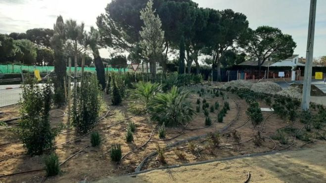 La vegetació arbustiva i d’arbrat utilitzada en el nou enjardinament són d'espècies adaptades al clima mediterrani, amb requeriments hídrics molt baixos. La gespa també és una varietat que requereix de regs molt baixos.