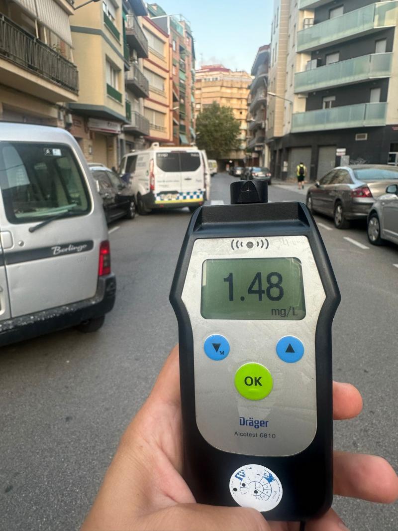 La Guàrdia Urbana de Reus ha aturat un conductor d'un vehicle que circulava de manera erràtica per l'avinguda Pere el Cerimoniós. Després de ser sotmès a la prova de l'etilòmetre, el conductor ha donat un resultat d'1,48 mg/l en la prova de mostreig, que s'ha confirmat amb 1,54 mg/l en la prova final.