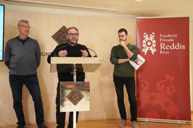 El regidor de Cultura i Política Lingüística de l’Ajuntament de Reus, Daniel Recasens; el patró de la Fundació Privada Reddis, Xavier Filella i el compositor, Joan Magrané han presentat aquest matí la nova programació de converses amb creadors Prosceni Reddis Bartrina 2023 que compta enguany amb dos cicles diferents que acolliran a sis convidats de stacats de l’àmbit de la cultura.