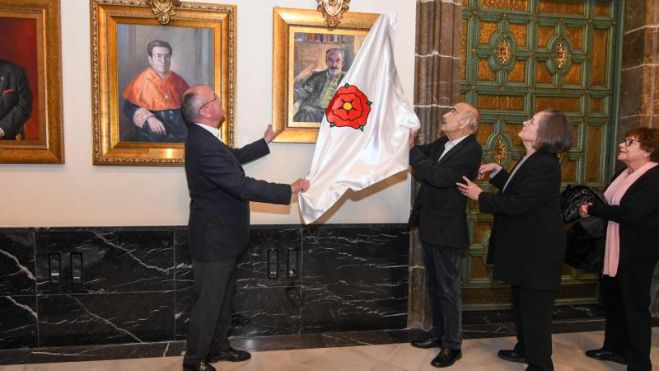 L’alcalde de Reus, Carles Pellicer, ha presidit aquest dimecres, 15 de febrer, l’acte de descoberta del quadre del filòleg, Joaquim Mallafrè, a la galeria de fills il·lustres del palau municipal.