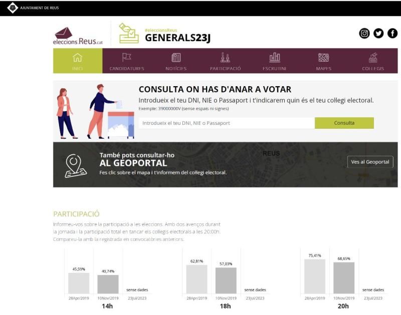 L'Ajuntament de Reus ha activat aquest 18 de juliol el web eleccions.reus.cat, a través del qual es podrà fer un seguiment al detall de la jornada electoral del 23 de juliol.