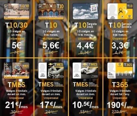 A partir del dijous 1 de setembre, i fins al 31 de desembre d'enguany, Reus Transport aplica la rebaixa d'un 30% als preus de totes les targetes multiviatge. Aquesta reducció afecta als abonaments més utilitzats, com la T-10, que passa de 8 euros a 5,60 euros els darrers quatre mesos de 2022. Els abonaments per a famílies nombroses i monoparentals també es beneficien de la reducció.
