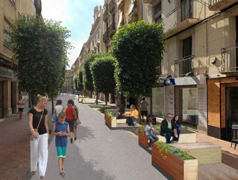 Serà una illa de vianants de plataforma única. El projecte manté les voreres i vorades actuals, i proposa un paviment confortable, d'asfalt polit amb àrids de pedra de color rosada per les zones on hi hagin de circular vehicles de manera ocasional. La circulació dels vehicles de residents es resoldrà amb el control d'accés mitjançant lectura de matrícula. També està prevista la redistribució de les zones de càrrega i descarrega afectades.
