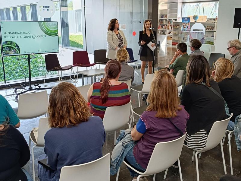L’actuació se centrarà en els espais interiors dels equipaments i els seus entorns. S'implantaran noves arbredes amb zones arbustives, es construiran umbracles, pèrgoles vegetals i se substituirà el paviment dur per paviments permeables i semipermeables que permetin una major retenció d'aigua i un millor desenvolupament de la biodiversitat de l'entorn. Així, s'incorporaran sistemes de drenatge sostenible, s'augmentarà el percentatge de cobertura arbòria, arbustiva i herbàcia (autòctona de baix requeriment hídric), la presència de flors i d'elements d'interès per a la fauna, hotels d'insectes, etc.