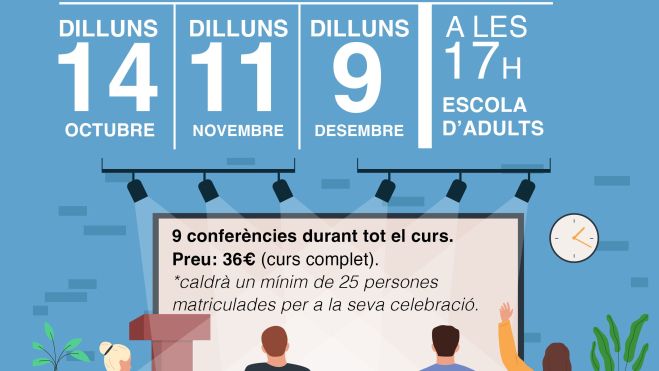 La totalitat del curs, amb les nou conferències, té un preu de 36 euros i caldrà un mínim de 25 alumnes matriculats per a la seva celebració.