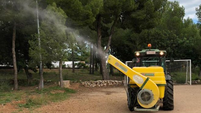El tractament es fa mitjançant un atomitzador amb el qual es poden tractar zones senceres, sense haver de fer-lo arbre per arbre.