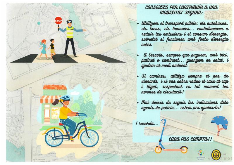 Es recomana als ciutadans a fer ús dels passos de vianants i respectar les normes de circulació quan caminen i a utilitzar cascs de protecció quan es desplacen amb bicicleta o patinet elèctric.