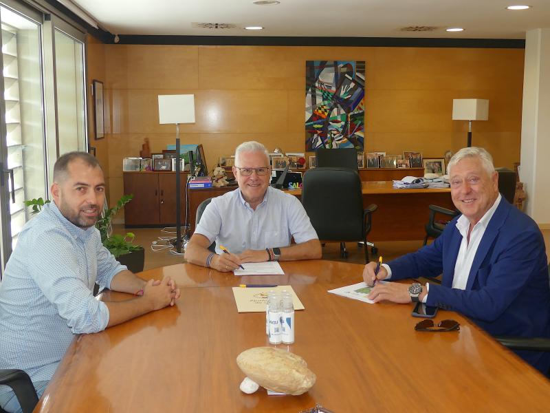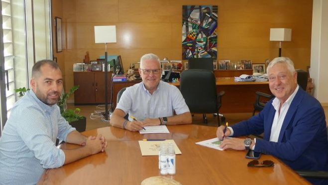 L’alcalde de Salou, Pere Granados, acompanyat del regidor de Foment de l’Esport, Daniel López, ha signat el conveni amb l’empresa MARSOPA, SL, mitjançant el seu director general, Xavier Blasi; pel qual els entrenaments i partits de competició dels equips de futbol i la seva escola, es puguin disputar durant el període de temps que durin les obres de canalització del barranc de Barenys a les instal·lacions esportives del Futbol Salou Sports Center, que és previst que comencin de seguida.