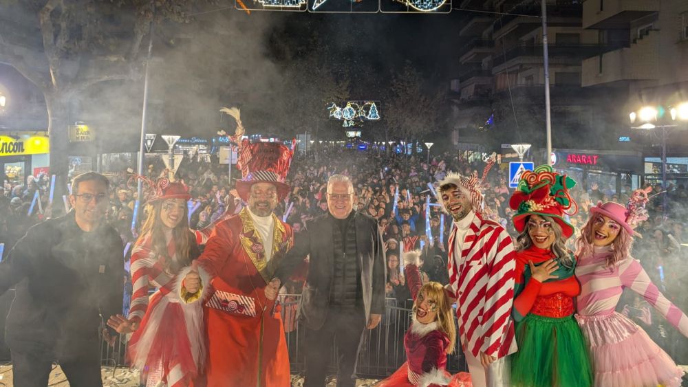 A les 19.20 h, l’alcalde Pere Granados, acompanyat del regidor de Dinamització Econòmica, ha pujat a l’escenari per prémer el polsador que ha encès el nou arbre de Nadal de 12 metres, completament renovat i dissenyat per imitar un avet natural. La llum ha esclatat en un esclat de centelleigs que ha arrencat exclamacions i un llarg aplaudiment.
