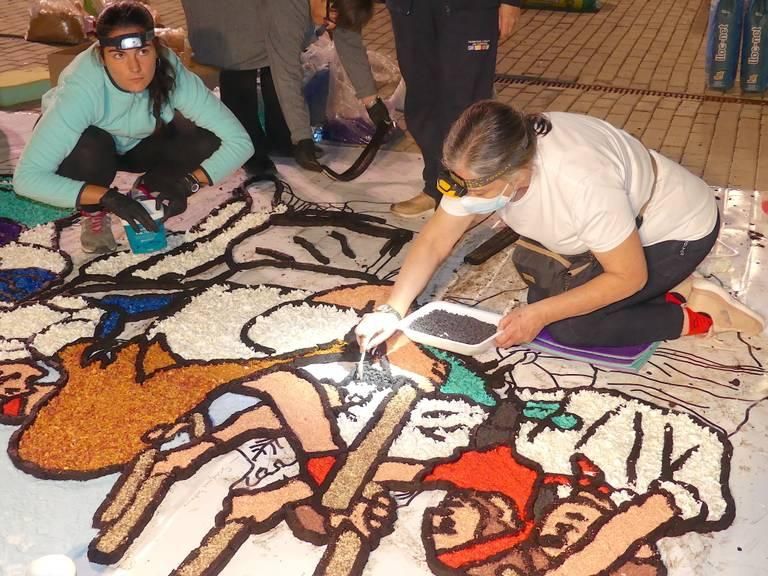 En l'elaboració de les catifes, s'empraran tècniques i quantitat de materials diferents, que oferiran un gran espectacle visual, acolorit i  innovador en aquest art efímer i de gran prestigi que es practica arreu del món.