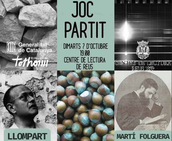 El dimarts 7 d’octubre a les 19:00, amb motiu dels 100 anys del naixement del poeta JM Llompart i dels 175 del reusenc Josep Martí Folguera, els Serveis Territorials de Cultura proposen, en col·laboració amb la Secció de Llengua i Literatura del Centre de Lectura de Reus, proposen una segona jornada del Joc partit en homenatge a aquests poetes.
