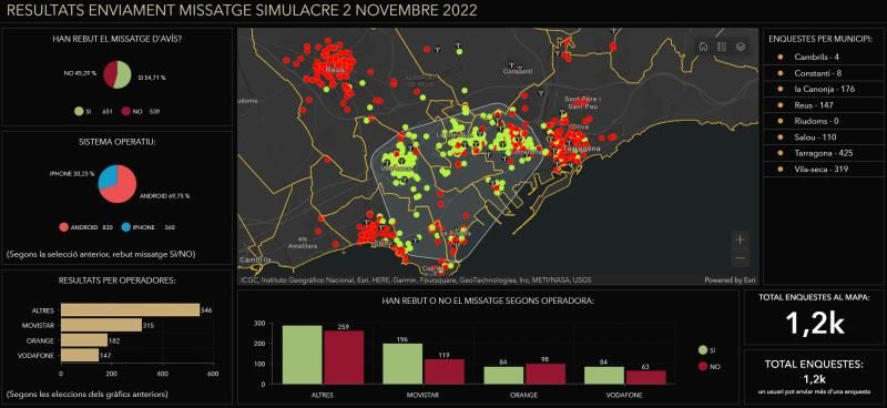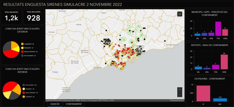 Per al formulari s'ha emprat ArcGIS Survey123, una solució de captura de dades totalment personalitzable amb la qual es poden crear, compartir i analitzar en temps real enquestes en pocs passos. La informació recollida de les 1.200 enquestes respostes s'ha bolcat en dos quadres de comandament: el primer amb els resultats de l'enquesta sobre el funcionament de les sirenes, i el segon amb les dades que fan referència als avisos rebuts en el mòbil.