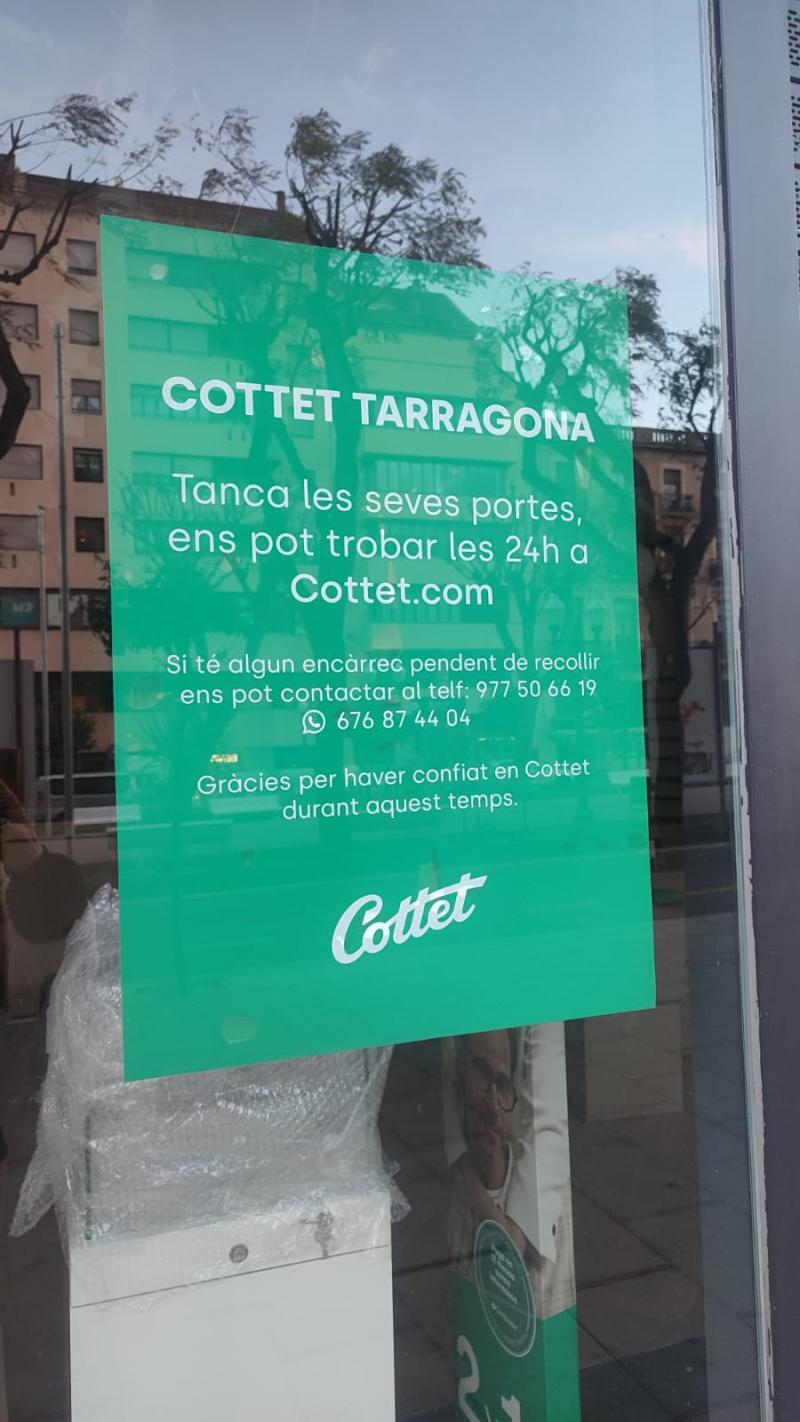 L'òptica tanca les portes deixant dos números de telèfon de contacte i s'acomiada amb la frase: "Gràcies per haver confiat en Cottet durant aquest temps".