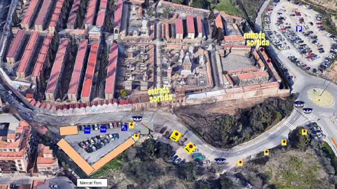 L’entrada serà per la porta principal del cementiri i la sortida s’habilitarà a la zona propera a la cruïlla amb Rovira i Virgili. Com a alternatives, es podrà aparcar al pàrquing dissuasiu del Camí del Llorito i a les zones d’aparcament regulat.