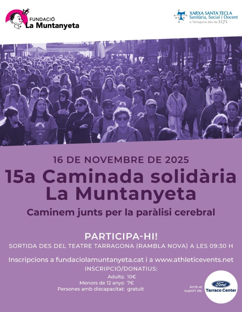 La Caminada Solidària de la Muntanyeta tornarà a omplir de solidaritat i esport la ciutat de Tarragona aquest diumenge, 16 de novembre, amb la seva nova edició. Organitzada per la Fundació La Muntanyeta de la Xarxa Santa Tecla, aquesta marxa no competitiva és una cita consolidada a la ciutat, que busca promoure la inclusió social i donar suport als projectes de l'entitat que treballa amb persones amb discapacitat.