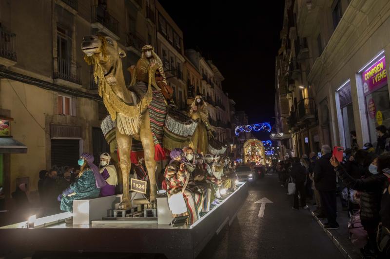 • A les 19 h, des del carrer Reial, inici de la Cavalcada dels Reis Mags, que obre la Guàrdia Urbana motoritzada i la carrossa del Fanal de la ciutat de Tarragona, i en què figuren –entre d’altres- la carrossa de l’Estel, que els ha guiat fins a la nostra ciutat, la de la Sínia, per subministrar aigua a totes les seves bèsties, i les del Dromedari, el Camell i l’Elefant.
