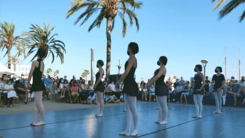 Però de sobte, el so dels talons i l’enrenou de les faldilles van irrompre al Moll de  Costa, de nou. Era el torn de l’escola ‘África Aguilar’ de Vila-Seca. Una trentena  d’alumnes començaren a dansar, amb un intuït somriure sota la mascareta, i amb l’atenta i orgullosa mirada de la seva directora, l’Àfrica.