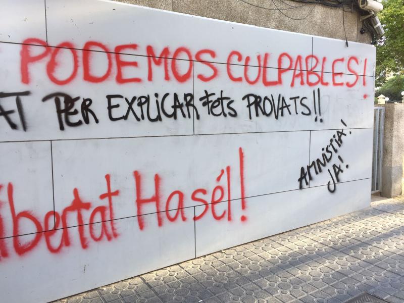 Tal i com es pot veure en algunes publicacions que alguns usuaris han publicat a les seves xarxes socials, a les pintades s'hi poden llegir missatges com: "Llibertat Hasel", "PSOE i Podemos culpables".