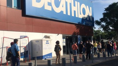 En el primer dia d'obertura de les grans superfícies, el parc comercial i d'oci Les Gavarres ha presenciat llargues cues de centenars de persones que esperaven el seu torn per poder accedir a les seves botigues.