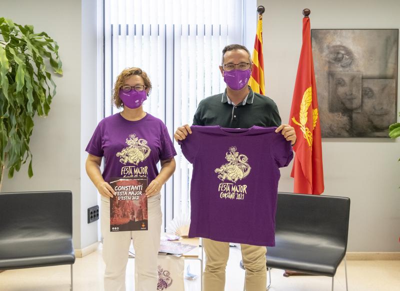 El color de la samarreta és el lila en homenatge a les dones, i des de l’Ajuntament de Constantí s’ha fet una crida a rebutjar qualsevol tipus de violència sexual o acte discriminatori i sexista durant els actes de la Festa Major. També es repartirán mascaretes liles amb el lema “Alcem la veu!”.