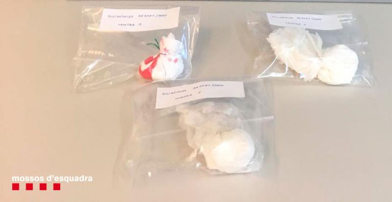 Seguidament, els mossos van recuperar la bossa la qual contenia tres embolcalls de grans dimensions amb 84 grams de cocaïna.