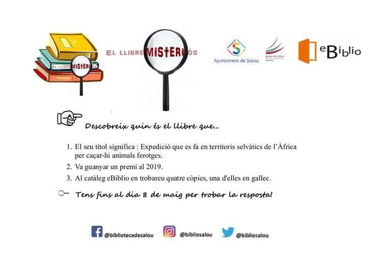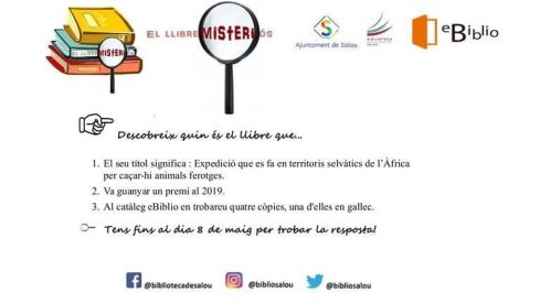 Els enigmes es publicaran a les xarxes socials de la Biblioteca, cada dilluns, a les 12 h del migdia. Aquest contindrà 3 pistes de text sobre el llibre misteriós.