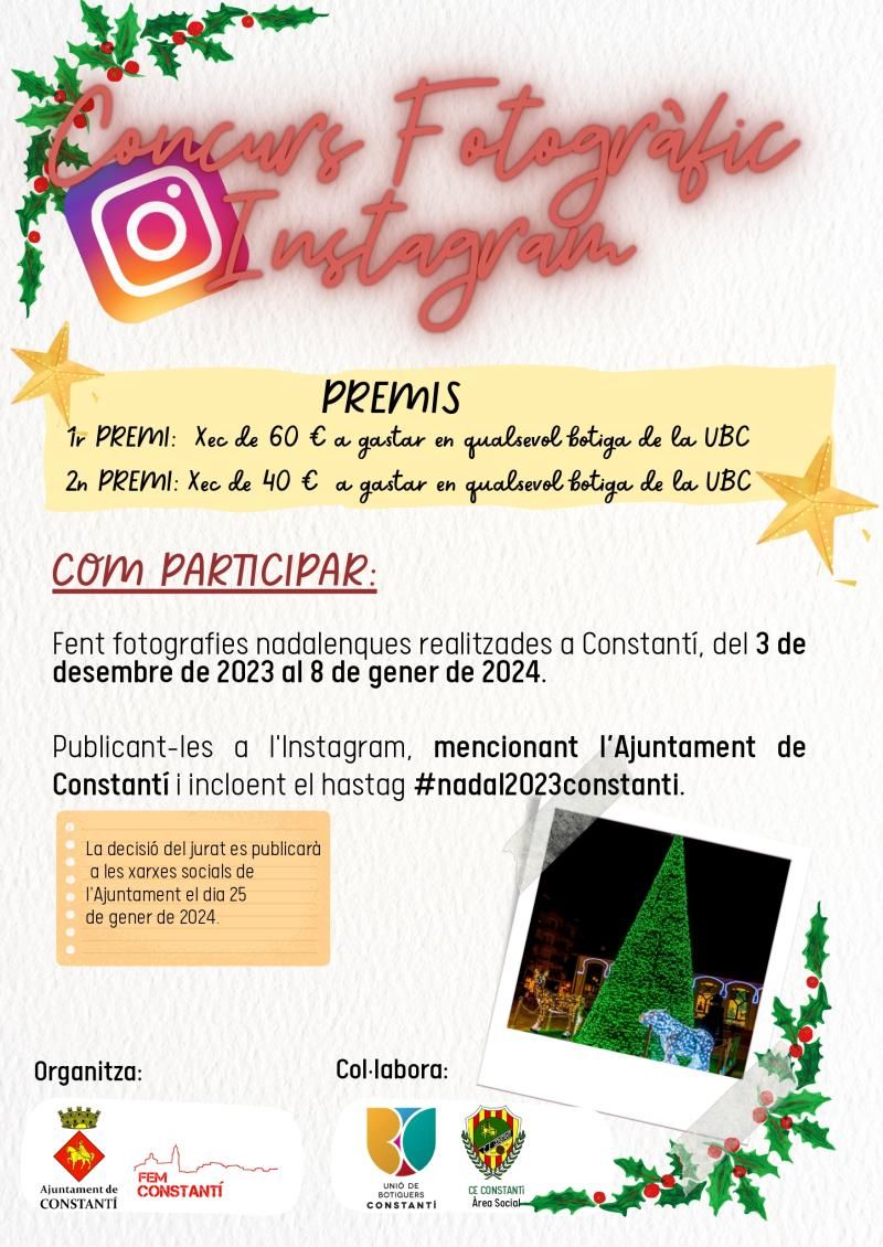 Durant aquestes Festes de Nadal tindrà lloc a Constantí una nova edició del concurs de Fotografia a través d'Instagram, una iniciativa de l’Ajuntament de Constantí, que compta amb la col·laboració del Centre d’Esports Constantí i la Unió de Botiguers de Constantí.