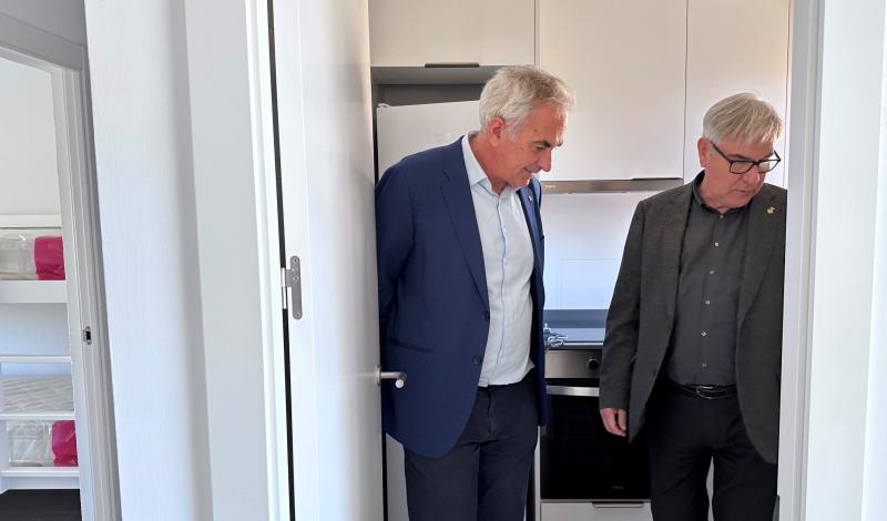 Aquest migdia han visitat l’habitatge l’alcalde de Torredembarra, Eduard Rovira; el delegat del Govern de la Generalitat a Tarragona, Àngel Xifré, i la regidora d’Acció Social i Igualtats, Marga Rovira, coincidint amb la visita institucional que ha dut a terme el delegat del Govern a l’Ajuntament de Torredembarra.