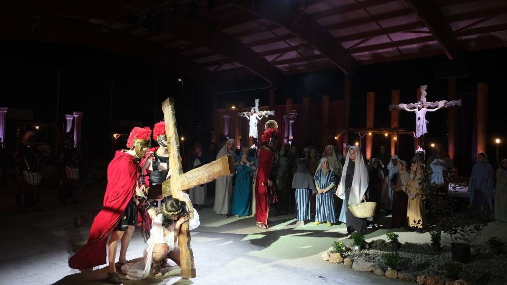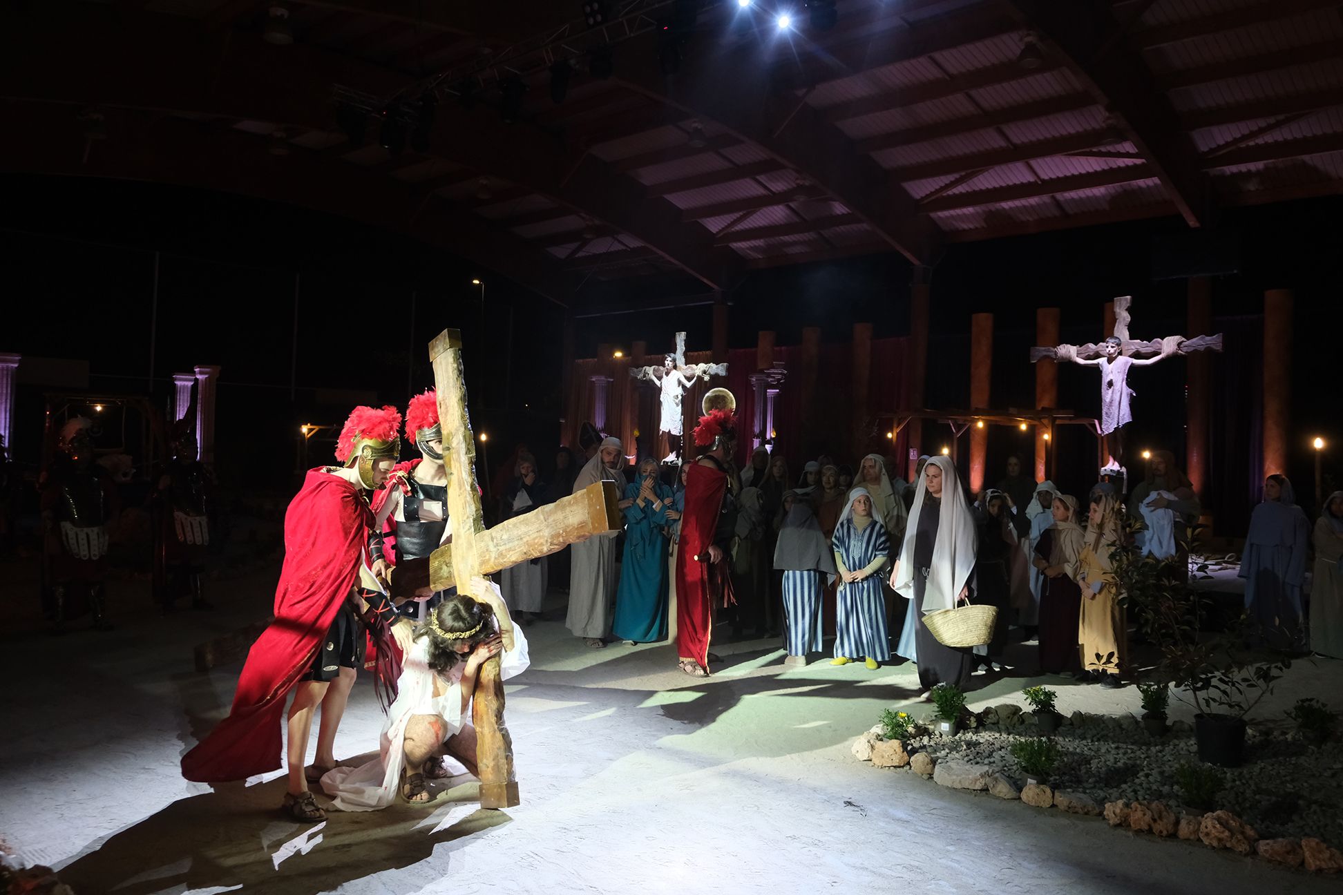 Des de fa setmanes, un constant degoteig de persones treballen intensament sobre la pista coberta del Complex Esportiu Municipal, a on el proper Dijous Sant (21.30 h) tindrà lloc aquesta representació que, com és sabut, escenifica la vida, mort i resurrecció de Jesucrist.