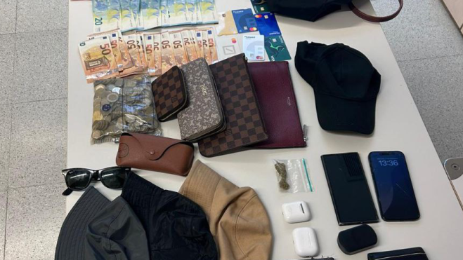 En l’escorcoll, els mossos van recuperar 900 euros en efectiu, set targetes bancàries, una gorra i uns auriculars sense fils. Al vehicle s’hi van trobar també 2.140 euros en bitllets, 164 euros en monedes, 4 lliures esterlines, diversos objectes personals de la víctima, tres carteres, dos dècims de loteria, tres telèfons mòbils, roba i altres accessoris.