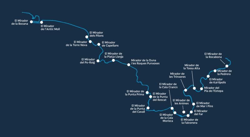 Una de les propostes estrella del Patronat de Turisme és la Ruta dels Miradors, que recorre el litoral amb vistes al mar i diversos punts d’observació emmarcats en un paisatge mediterrani excepcional. L’experiència permet conèixer platges i cales, penya-segats i la fauna i flora autòctones.