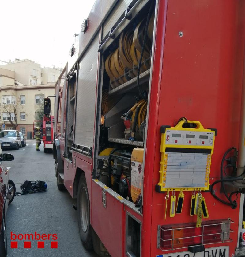 Segons informen els Bombers de la Generalitat, l'origen de l'incendi es troba a la cuina d'una casa del carrer Wad-Ras. El foc ha cremat completament la campana extractora i també part dels mobles de la cuina.