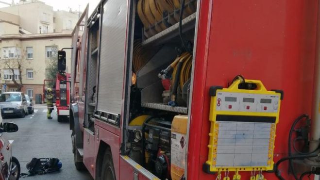 Segons informen els Bombers de la Generalitat, l'origen de l'incendi es troba a la cuina d'una casa del carrer Wad-Ras. El foc ha cremat completament la campana extractora i també part dels mobles de la cuina.